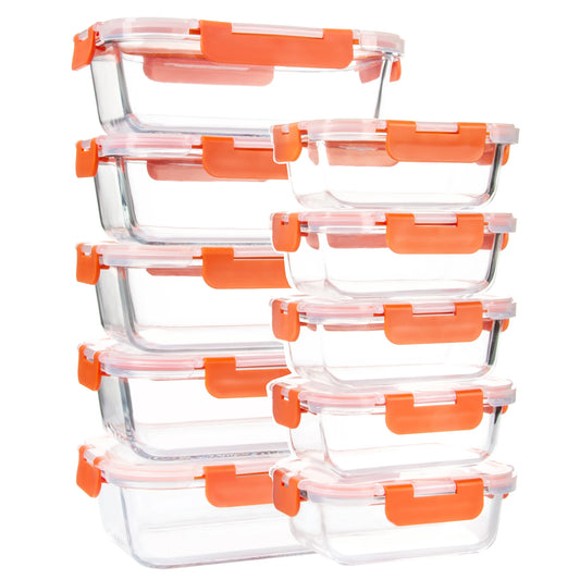 10 Pack Orange Food Storage Container Set, Glass Meal Prep Containers with Lids, Microwave, Freezer and Dishwasher