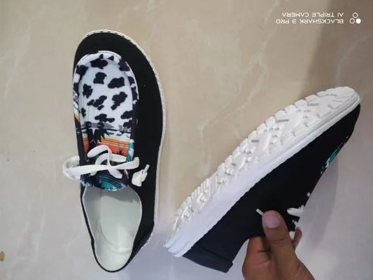 Cow Print Canvas Shoes Men Low Animal Printed Men Streetwear Man Skateboard Shoes